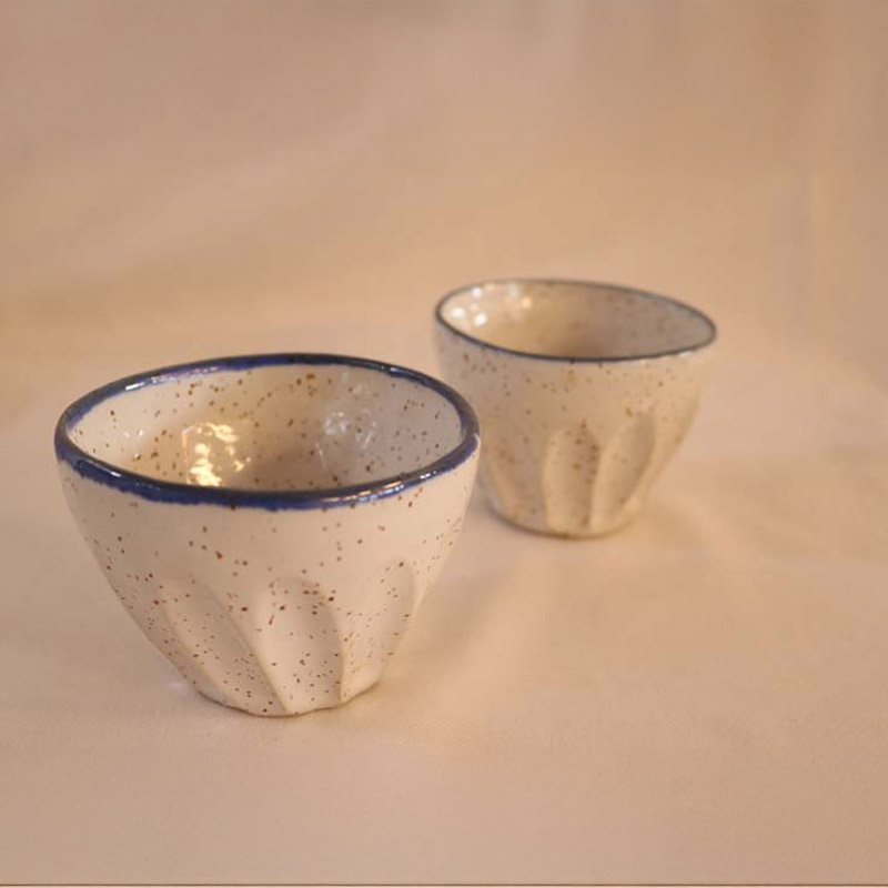 Piezas hecha con gres de alta temperatura con esmalte libre de plomo, aptas para contener alimentos o bebida.
