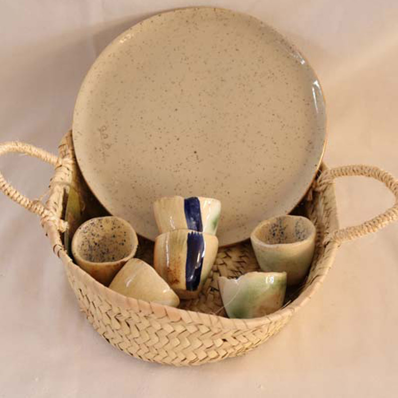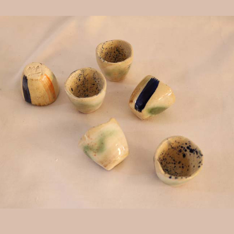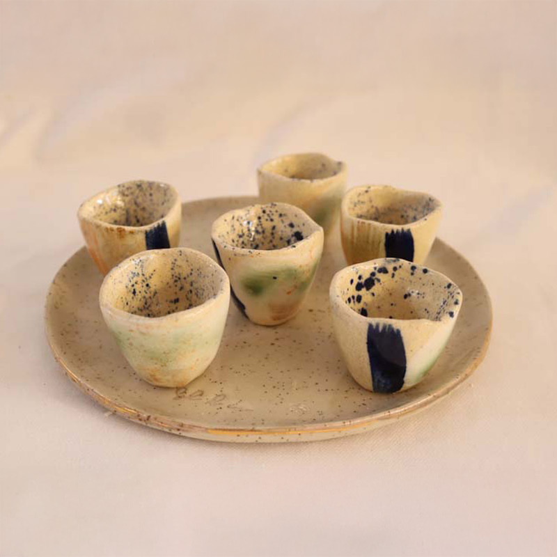 Piezas hecha con gres de alta temperatura con esmalte libre de plomo, aptas para contener alimentos o bebida.