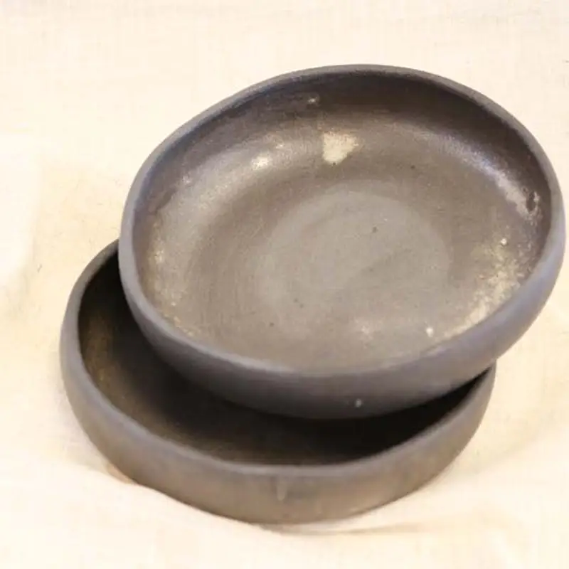 Pieza hecha con gres de alta temperatura con esmalte libre de plomo, apta para contener alimentos o bebida.