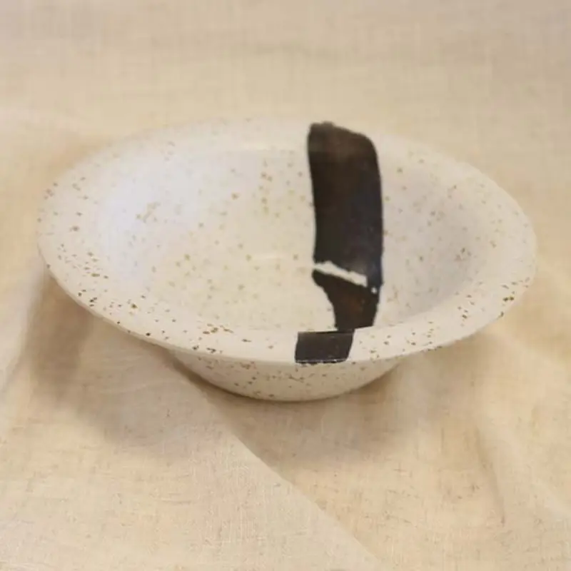 Pieza hecha con gres de alta temperatura con esmalte libre de plomo, apta para contener alimentos o bebida.