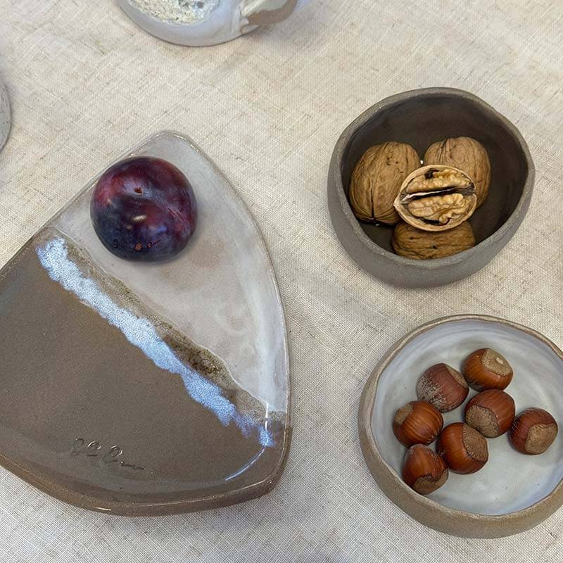 Pieza hecha con gres de alta temperatura con esmalte libre de plomo, apta para contener alimentos o bebida.