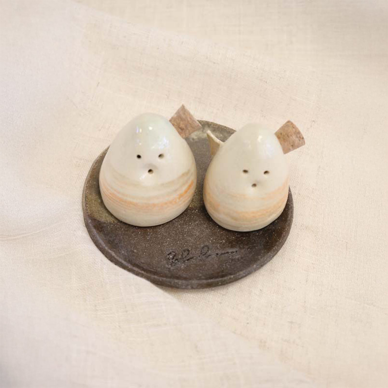 Salero y Pimentero ceramica Sal y y Sol con plato