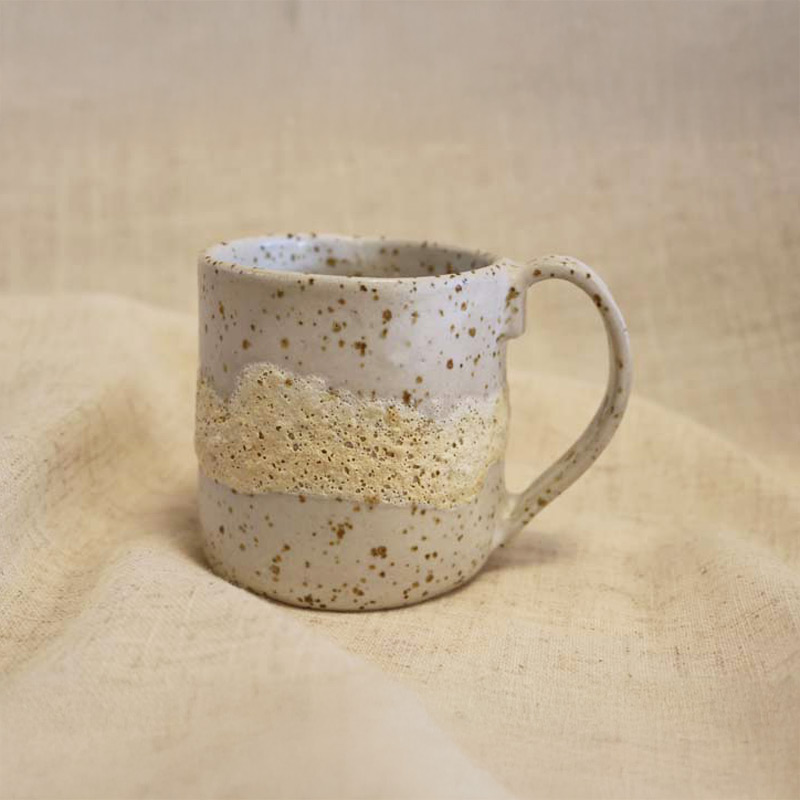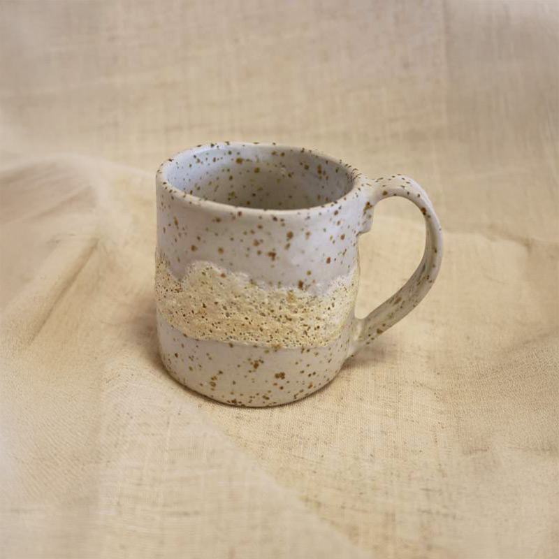Taza grande de cerámica artesanal ideal para tus desayunos y bebidas calientes.