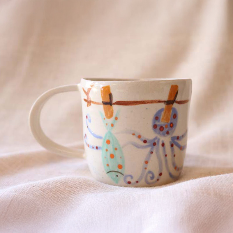 Cada taza ha sido realizada a mano en gres moteado y con esmaltes libres de plomo para que no transfieran en tus alimentos y bebidas. Las puedes usar en lavavajillas y microondas, aunque para un mejor mantenimiento te aconsejamos lavarlas a mano.